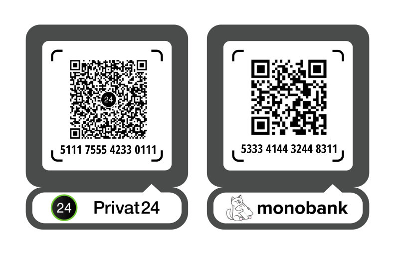 Табличка для оплати карткою через з QR-код (будь-який банк) з акрилу 200х250 мм
